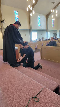 Our brothers Matteo and Micah are baptized on Thanksgiving Sunday worship, 2023